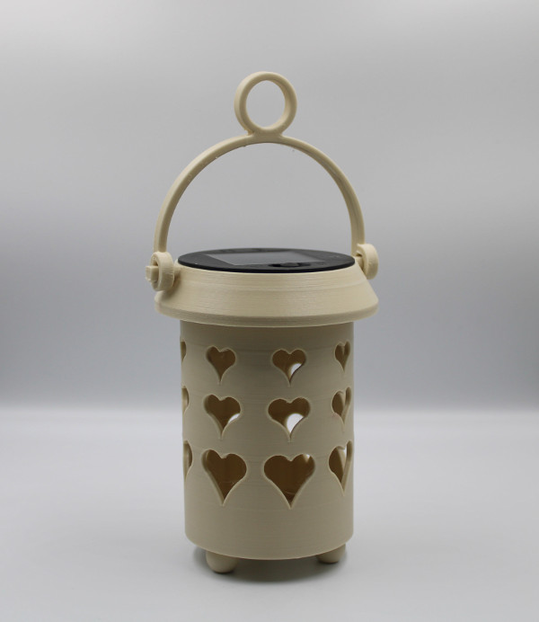 Solar Leuchte „Herz“ im 3D-Druckverfahren gefertigt und aus umweltfreundlichem, biologisch abbaubarem PLA hergestellt. Die Solar Leuchte läd sich im Tageslicht auf und schaltet sich bei Dämmerung ein. Die Ein-/Ausschaltung kann auch manuell erfolgen.